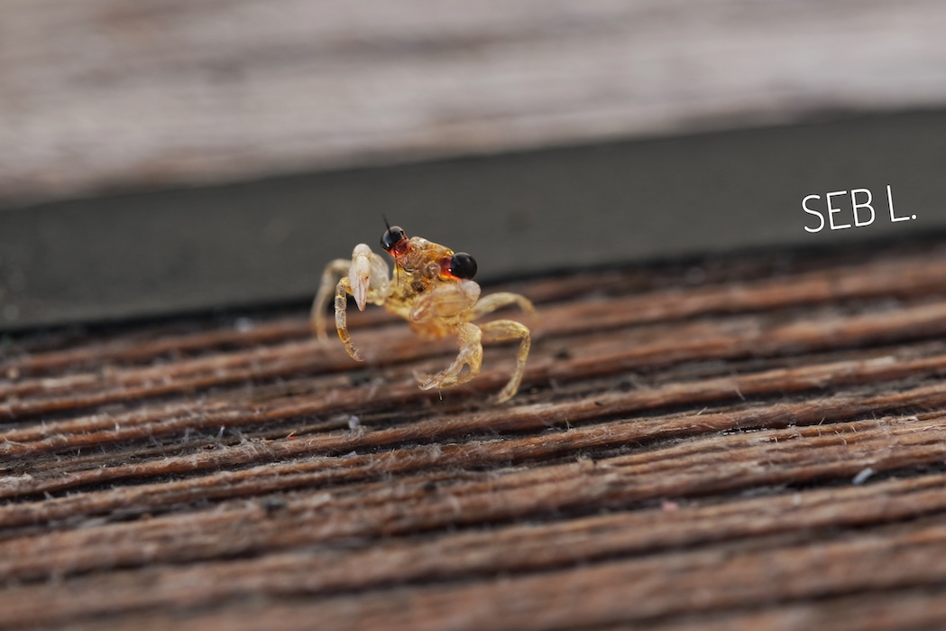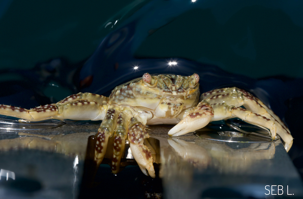 There were lots of different size and types of crabs to be found in the water and on Moonwave’s hulls. One small crab lived in the attachment fitting of the swimming ladder for couple of weeks. We also found lots of tiny glass crabs that were living just at the waterline on the hulls.