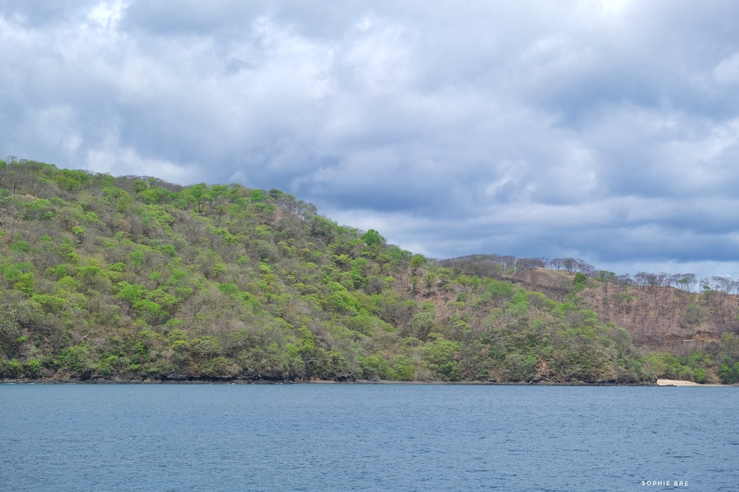 From the little that I knew about Costa Rica, I always imagined lush green jungle, with banana and coffee plantations, tropical rainforest and waterfalls. You can imagine our surprise when we arrived in the bay end of March and all the trees on the surrounding shore line where brownish. Little did I know about the seasons in Costa Rica and especially the Northern part. When talking to friends who live in a different part of the country, they had much more rain already earlier in the season. But it only took a couple of rain showers when the season changed to have all the trees turning green and colorful patches of flowers to appear on the hills across the bay.