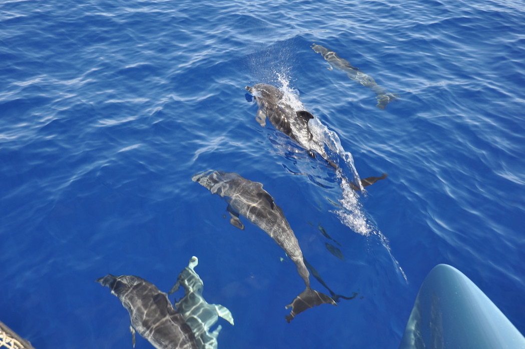 - The whales: we could not identify them properly. But they were definitely larger in the Pacific. Also cetacean in general tend to follow more the boat in the Atlantic than in the Pacific where they crossed pass us very fast. Maybe like us they are late and need to catch up with the rest of the fleet, so no time for a chat.