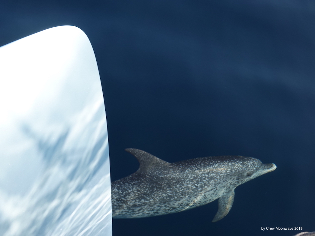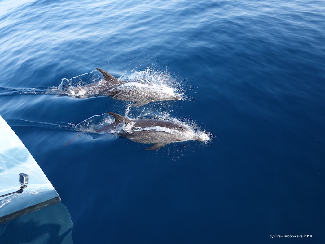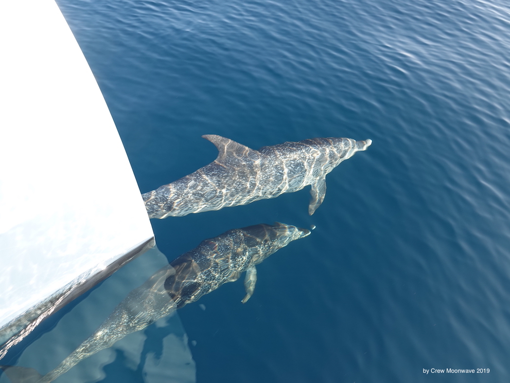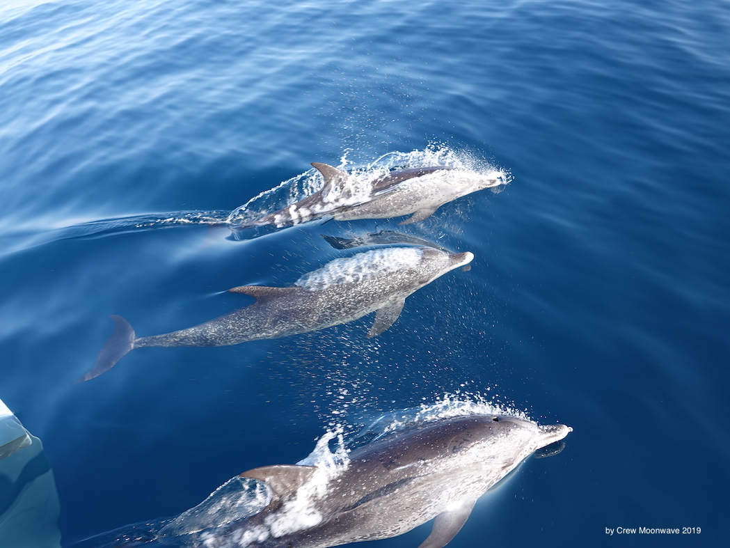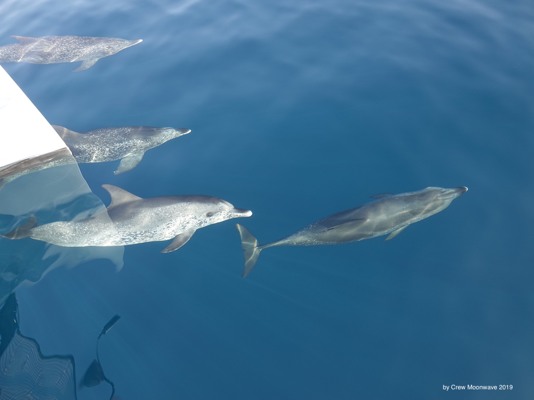 When dolphins come around to play at the bows of Moonwave, it’s always a joy for everyone on board.