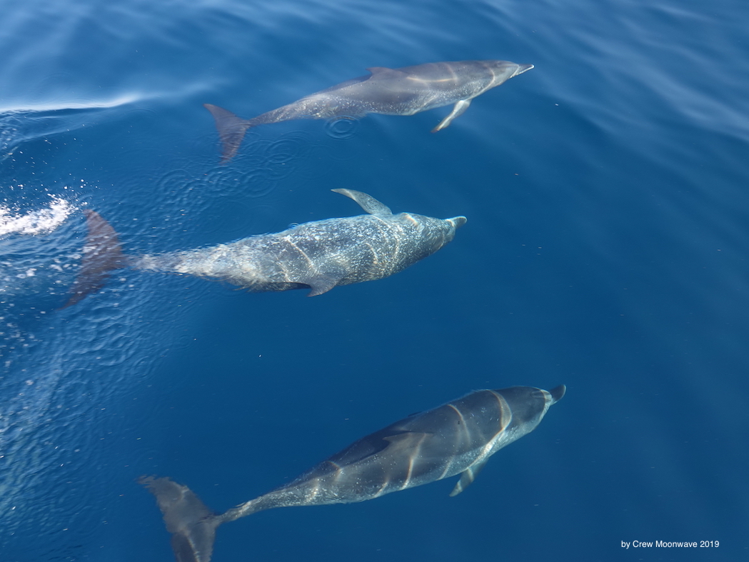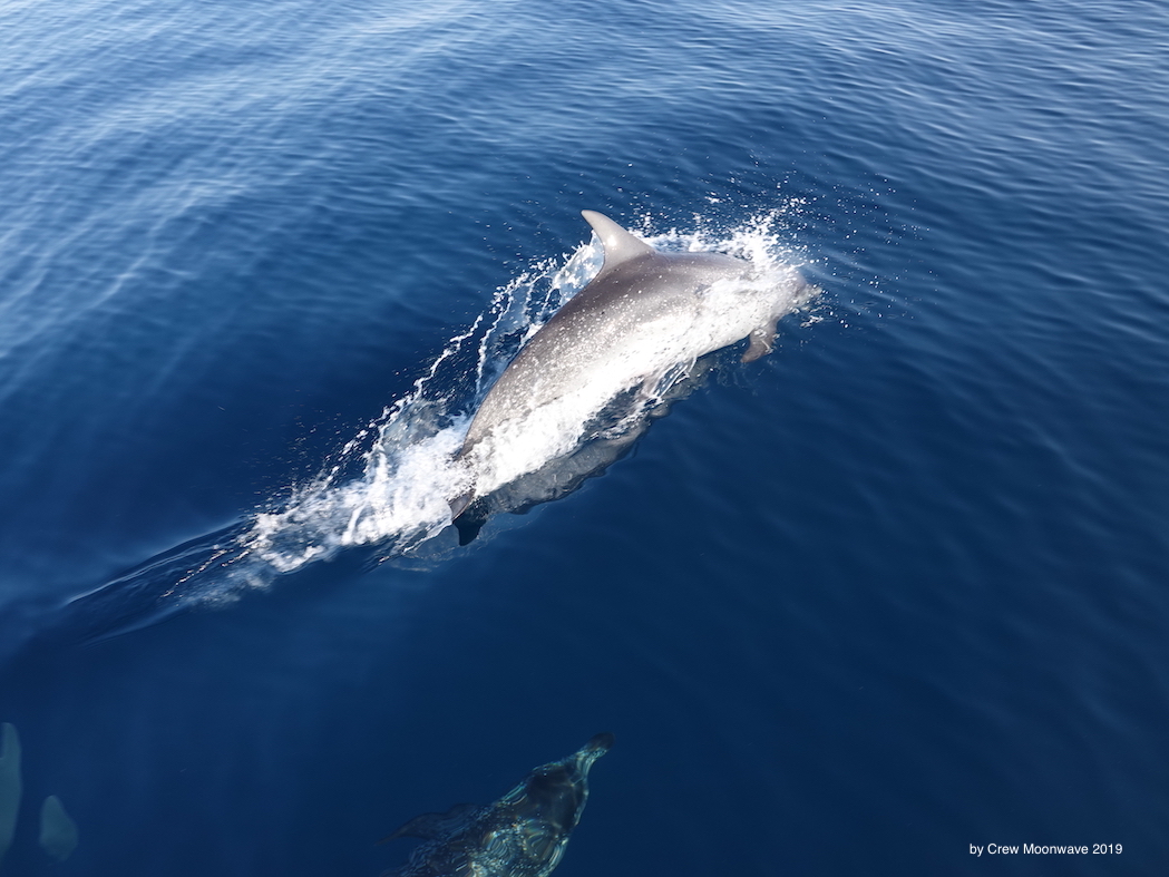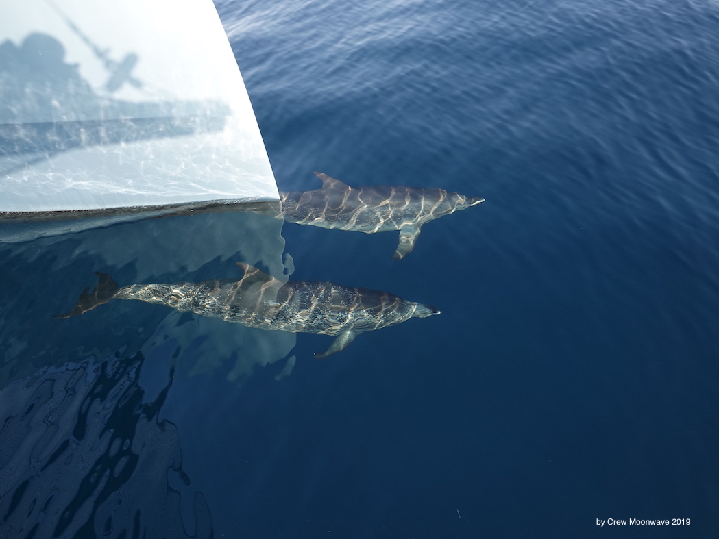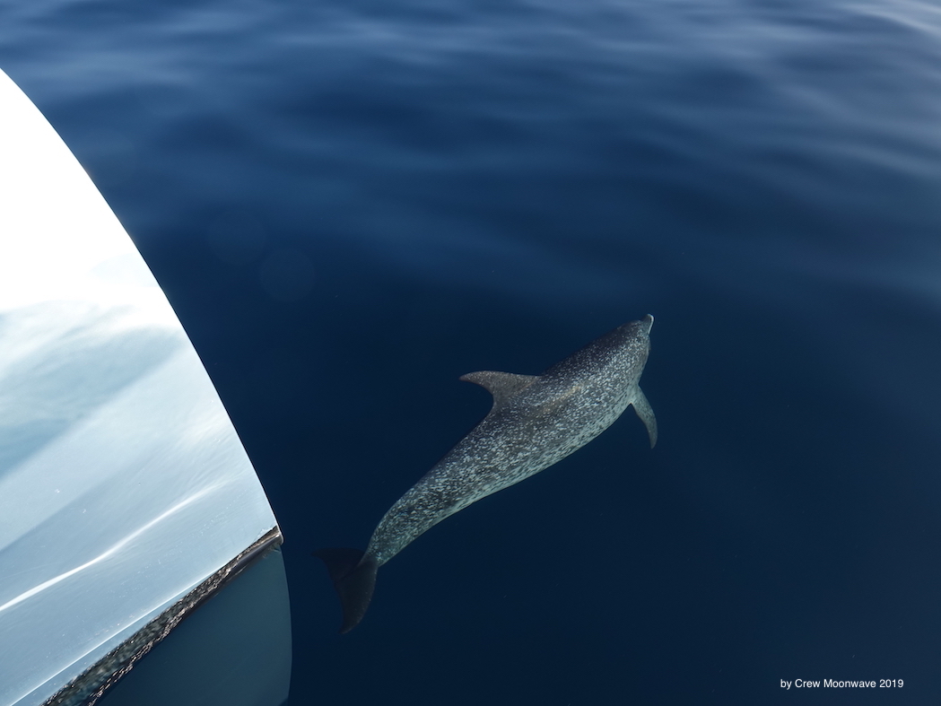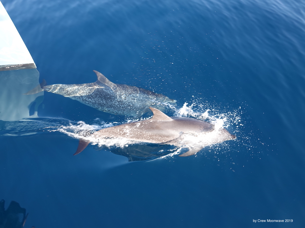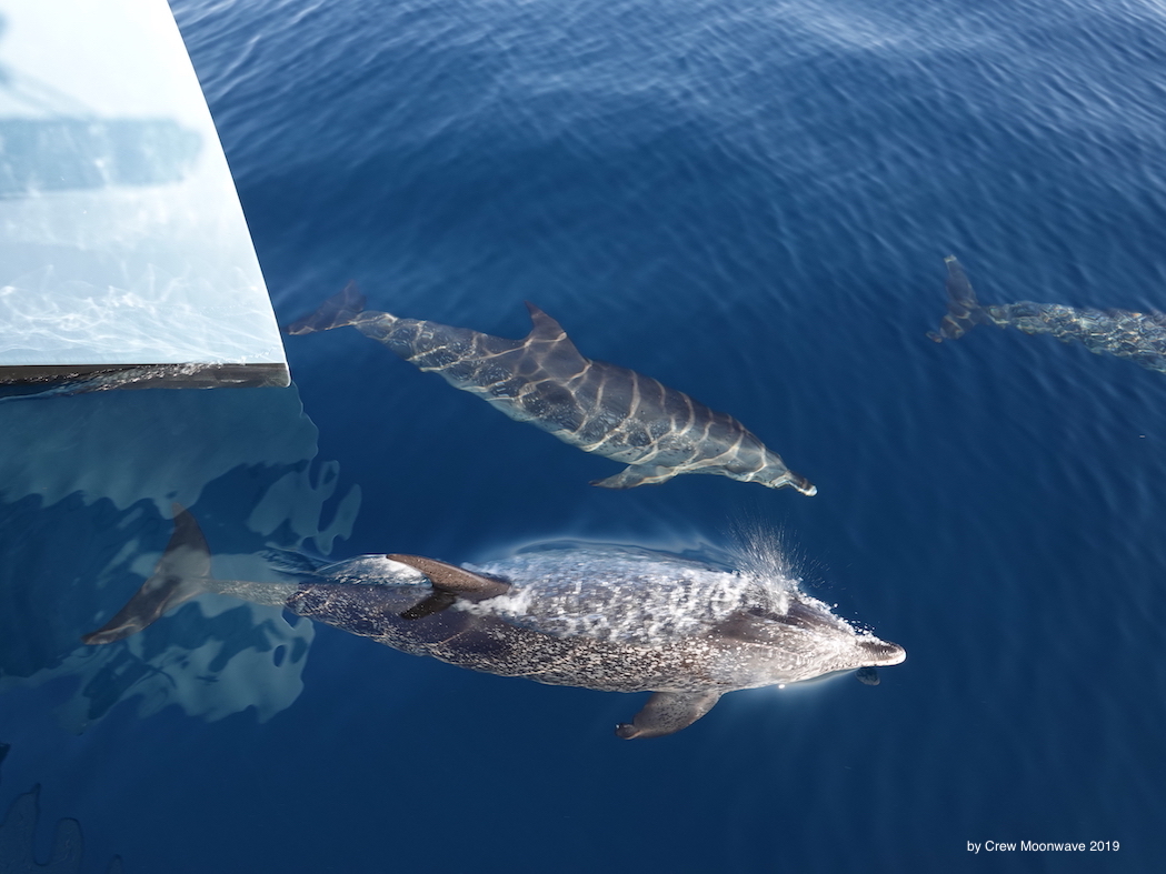 When dolphins come around to play at the bows of Moonwave, it’s always a joy for everyone on board.