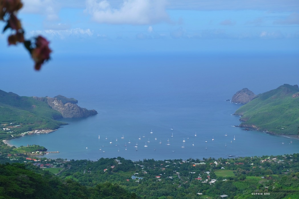 We anchored in the middle of Taihoa’e Bay. The Bay is pretty deep and surrounded by big hill to three sides. The winds and currents are shifty and so it can happen that the boats at the anchorage turn and face different directions. The bay is well protected from the wind but the swell can enter from the south, which makes it less comfortable especially for monohulls.