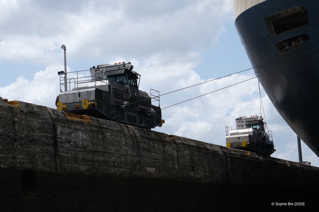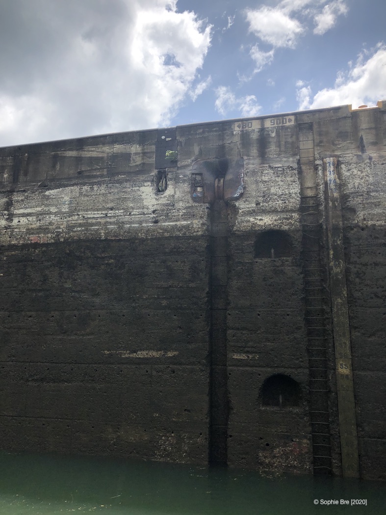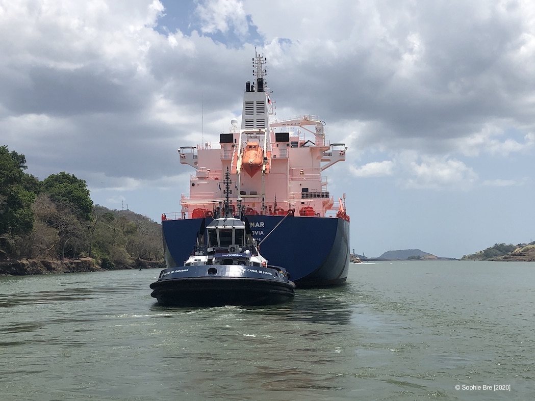 Already in normal times, the planning and organization of the canal passage is exciting. We had an agent who organized the paper works [cruising permit, canal papers etc.] and the measuring of Moonwave by the Canal Authorities. With our bowsprit and tender in the back, Moonwave was “upgraded” to needing a pilot instead of an advisor for the trip across. The situation on site made the scheduling of our passage more “interesting”. We only got our assignment last minute. Nevertheless we made it all in time. The only thing that changed was the fact that we were not passing by ourselves like originally planned but with two other sailboats at once. To be honest, the most “nerve wracking” moments of the whole trip where the moments when the other sailboats were “nesting”. Which means tying up to Moonwave. For the first lock passages we had a blue monohull on Portside and a small aluminium monohull on starboard side. For the second part/day, the small aluminum boat didn’t make it in time across the lake so we were only two boats to go through the Miraflores locks together.