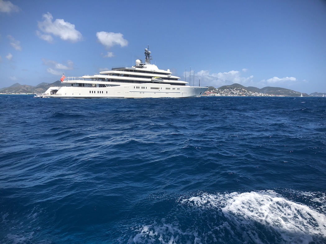 At this time of the year there are lots of huge and impressive yachts anchored in the Bays of Marigot and Simpson Bay.