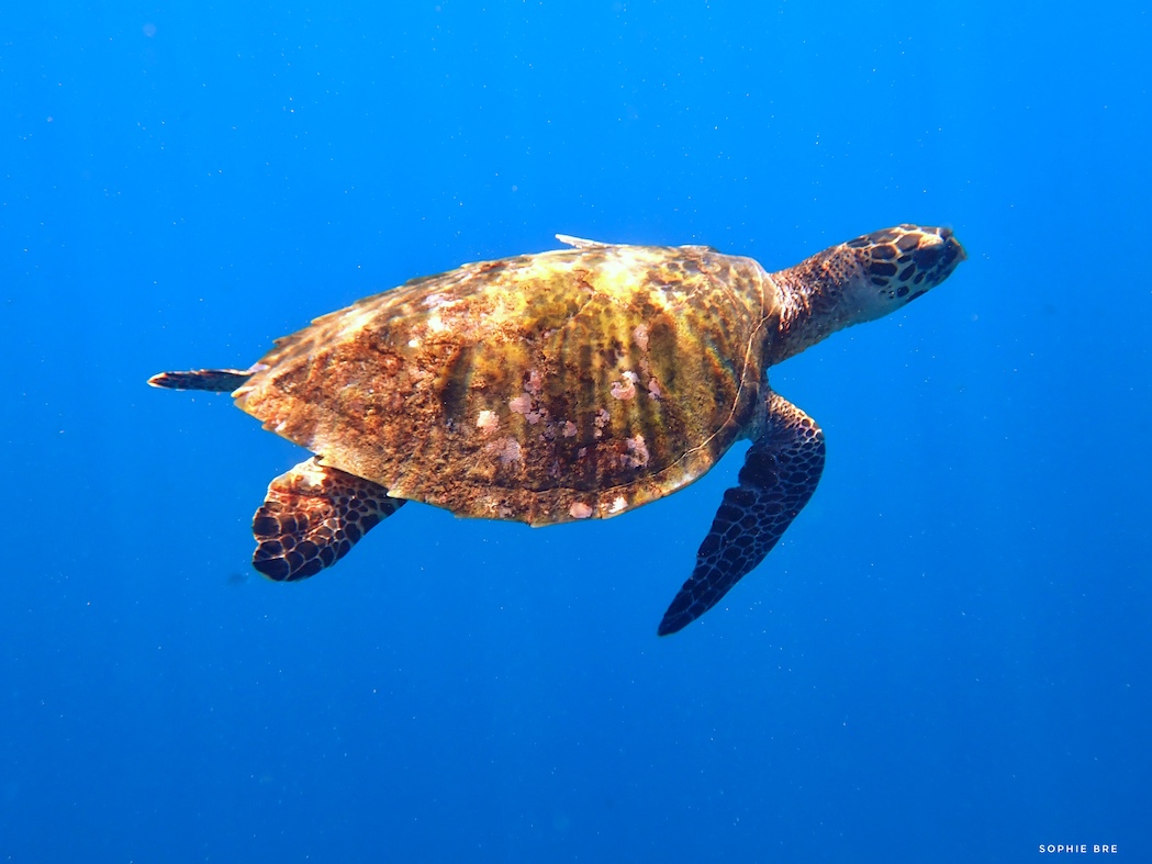 The diving in French Polynesia is just stunning. Not only is the water warm and clear but the coral reefs are very colorful and rich in life, that was impressive. On the reef all the grounds were covered with “healthy” corals and featured lots of fish, turtles and sharks. And in the deep, outside of the lagoons and in the cuts, you can find big fish, lots of sharks and different species of whales, rays and dolphins.